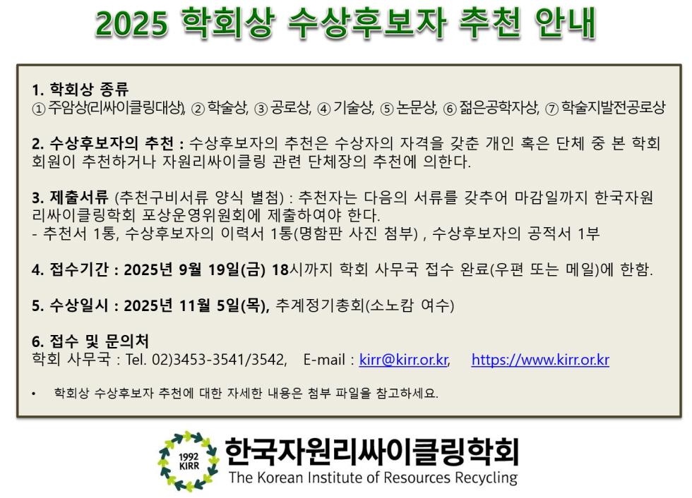 [ 공지 ] 2025 학회상 수상후보자 추천 안내